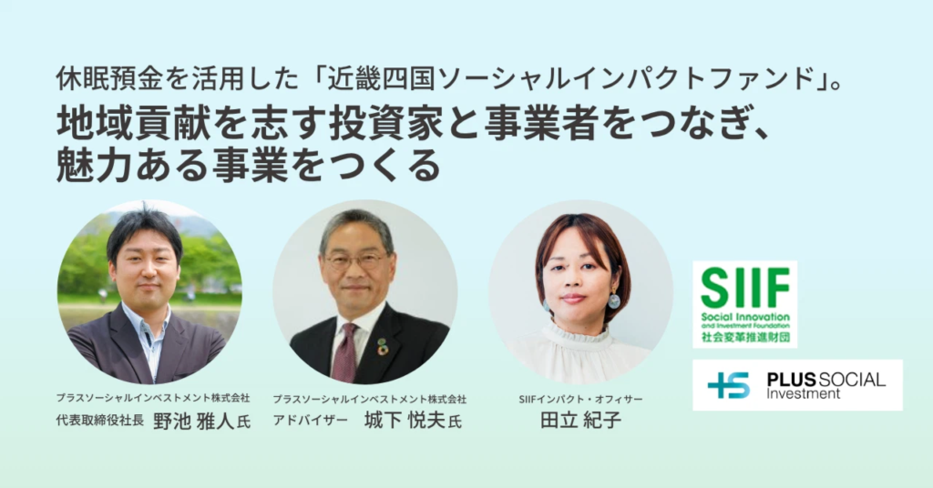 休眠預金を活用した「近畿四国ソーシャルインパクトファンド」。地域貢献を志す投資家と事業者をつなぎ、魅力ある事業をつくる